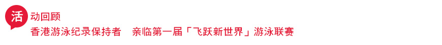 | 在刚刚过去的五月一日,「飞跃新世界」旗下之「新世界飞鱼计划」的小飞鱼挤满东涌游泳池,为了在「第一届飞跃新世界游泳联赛」大显身手,与其他地区的小朋友一较高下。